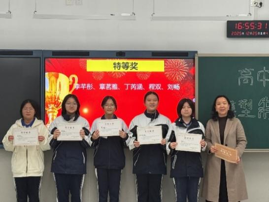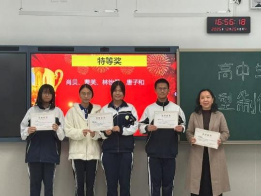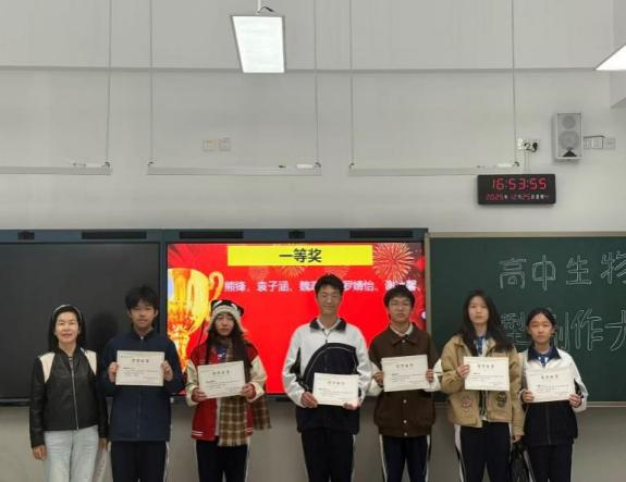 大赛颁奖仪式隆重举行,学校领导、高二生物科组全体教师与获奖学生代表齐聚一堂,共同见证荣耀时刻。颁奖仪式上,罗主任、许老师为获奖学子颁发荣誉证书与奖品,并高度肯定大家在赛事中实现的 “科学与美学的完美融合”,并寄语全体高二年级学子:“生物模型是连接理论与实践的桥梁,更是承载知识与美感的载体。愿大家永葆对科学的好奇与对美的追求,在动手实践中感悟知识力量,在美学表达中提升综合素养,成长为兼具科学精神与人文情怀的复合型人才。”